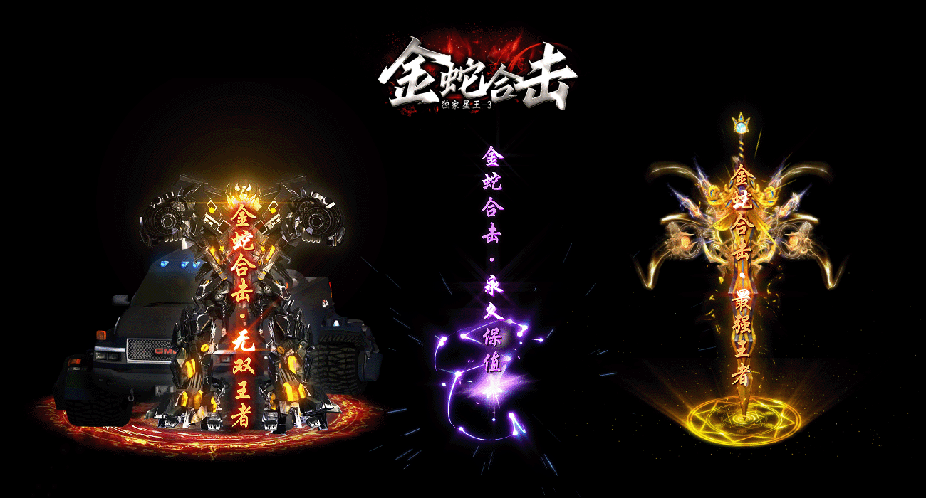 ◆ 装备层次◆ 雷霆-强化-战神-星王-盛世-无双-金蛇(终极装备)所有装备均可爆出来。